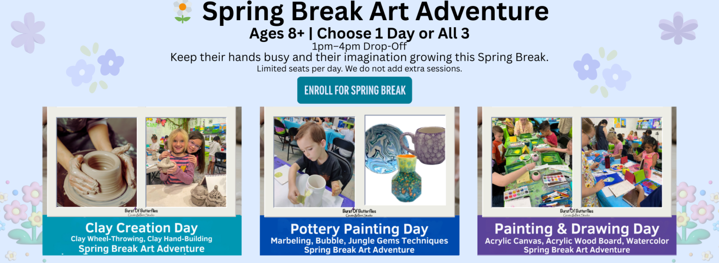Walk-in painting, guided classes, clay experiences, and unforgettable parties.