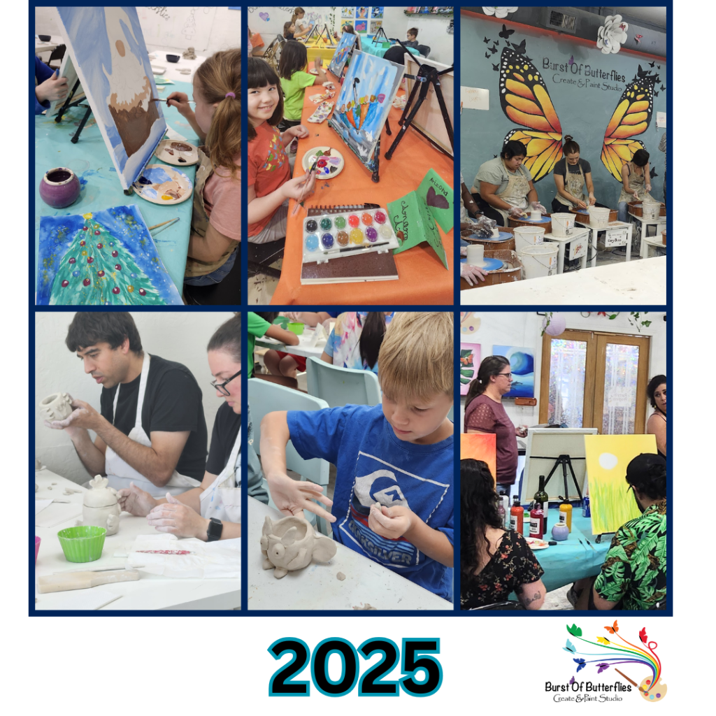 At Burst of Butterflies, we witnessed countless meaningful moments this year โ families creating together, kids discovering confidence through art, friends gathering for paint nights, couples laughing at the wheel, and community partnerships that reminded us why this work matters. Each brushstroke, each piece of clay, and each shared smile told a story of connection.