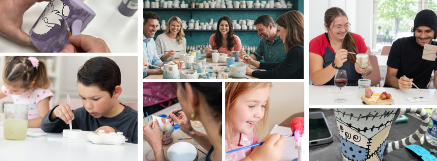 Kids choose from a wide selection of ceramic pieces and paint them at their own pace using our vibrant glaze colors.