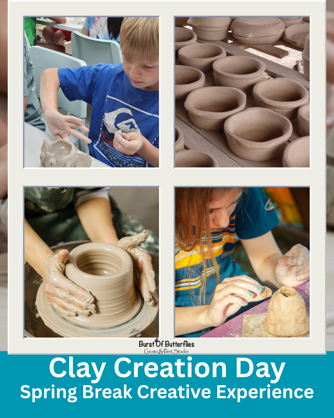 Clay Creation Day is part of our Spring Break Creative Experience—a two-part pottery journey designed to give kids a full, satisfying clay experience from start to finish.